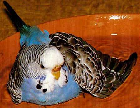 Уявили? Тепер Ви приблизно знаєте, що робилося у мене вдома, коли я займалася розведенням хвилястих папуг. Жовта мама, блакитний тато і троє фіолетових донечок вітали мене щоранку голосним криком. Адже це одна папужка щебече. А коли всі п’ятеро просинаються зі сходом сонця в зачинених клітках, вони просто вимагають, щоби їх випустили на волю.