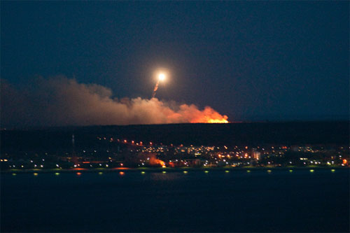 Издание Life News сообщило, что cерия мощных взрывов прогремела на Нижней Терассе, жилом районе, рядом с которым расположены склады вооружения ВМФ в Ульяновске. В небо взлетают заряды.