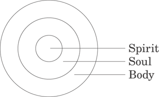 Здесь нам снова необходимо выяснить, что человек – это сложная духовная личность, которая выражается в трёх измерениях. Он представляет из себя дух, душу и тело (Быт.2:7). Об этом говорит и Новый Завет (2Кор. 4:16; 1Петр. 3:4). Тело – это внешний человек, а дух – внутренний человек.. Наш дух вечный.
